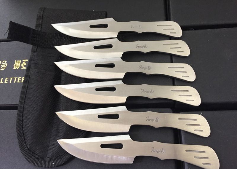 Funy鹰眼单刃飞刀(6支套装) 全长:16 cm 刃长:8.5cm 刃厚:0.3cm 材料:高级不锈钢 硬度:54-56 重量:50克/支, 一套6支装 美国飞镖协会订单产品,经典鹰眼单刃飞刀,线条简练,上手容易,是你飞刀练习的最佳选择!
